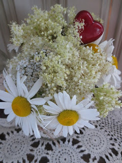 Osa kaasoista haki juhlapaikalle luonnosta kukkia ja tekivät niistä somia asetelmia pöytiin...