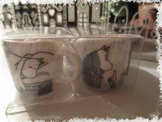 Ja tietenkin muumimukeja ja lautasia keräilen :)Sain syksyllä kummityttö Riinalta nämä suloiset minimukit.... Kiitos Riina :)